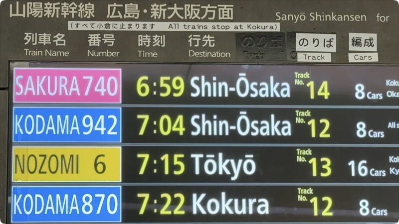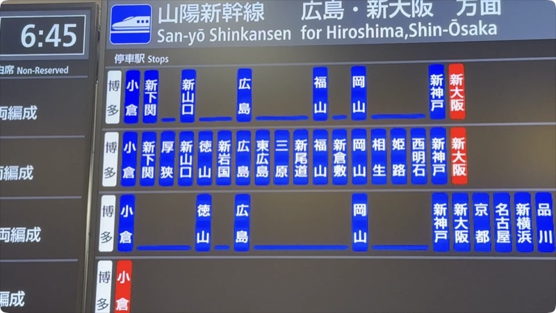 博多から新大阪まで各駅停まるので停車駅多い