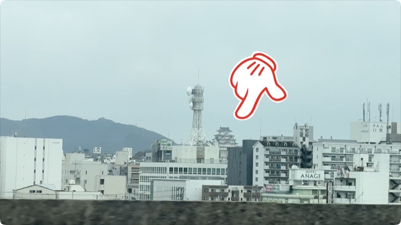 姫路駅近くになると瞬間的にビルの隙間から姫路城が見えます