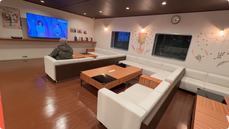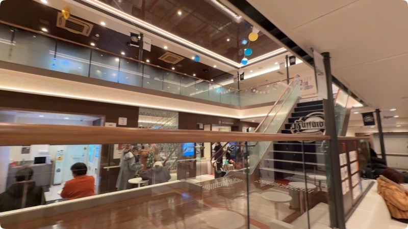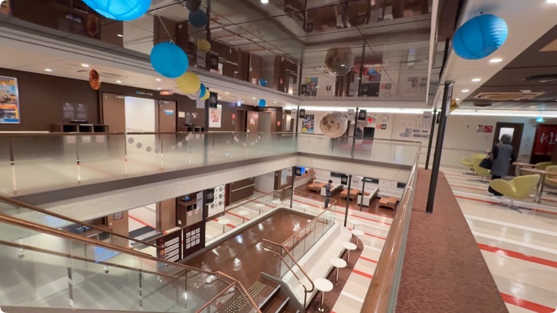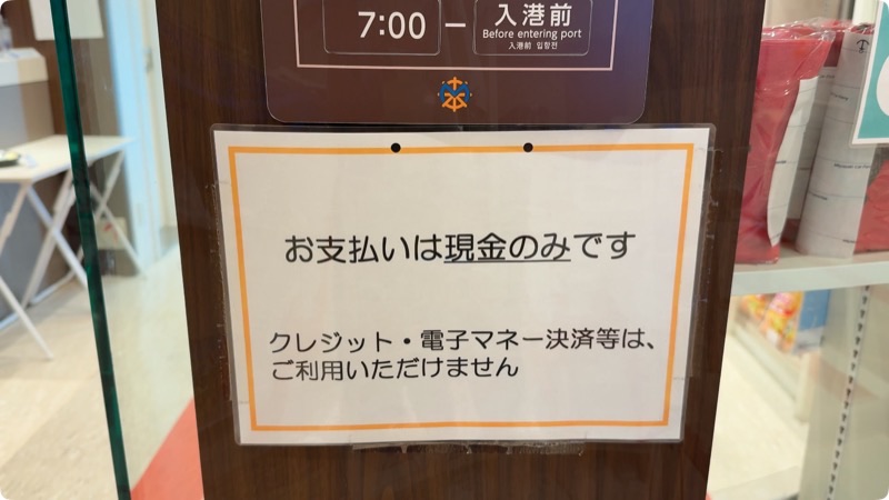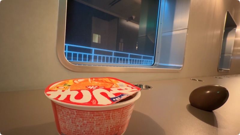 乗船は連絡通路ではなく、地上を歩いて直接船に向かうスタイル。少し珍しく、まるで宇宙船に乗り込むような感覚がありました。