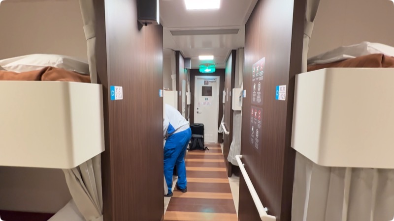 カプセルホテルのような構造で、幅はやや狭め。天井も低く、手が届くほどの高さです。