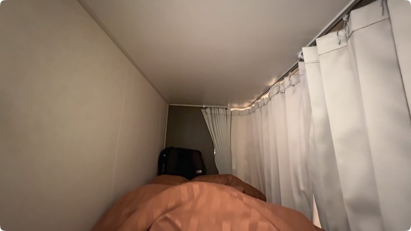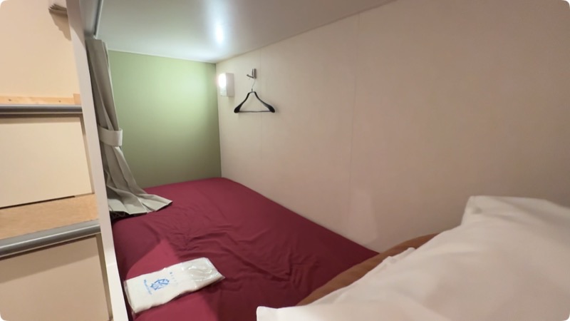 また、ドミトリーのため周囲の音も気になります。実際、隣人ガチャ失敗で隣のいびきがかなり大きく、睡眠環境はあまり良いとは言えませんでした。笑