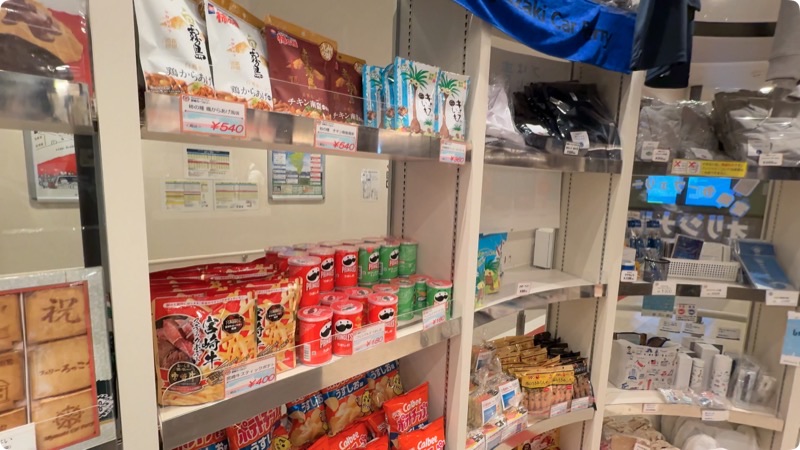 小規模ながら、オリジナルグッズや軽食、アメニティが販売されています。ただし支払いは現金のみなので注意が必要です。