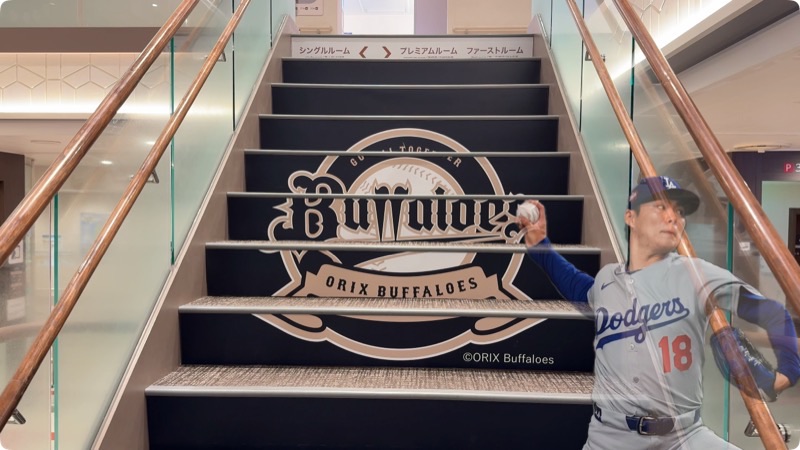 船内の階段にはバッファローズとコラボしてるようでロゴがありました