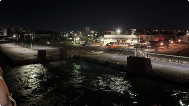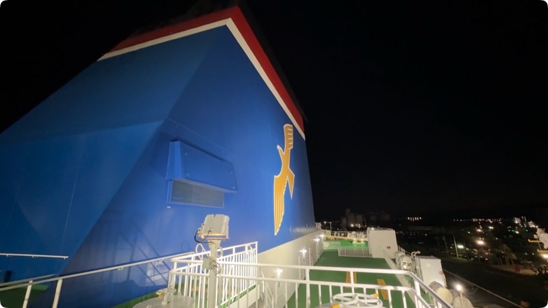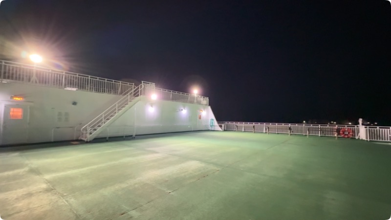 デッキはややコンパクトで、移動できる範囲も限られていますが、夜の港や朝の海の景色はやはり格別です。