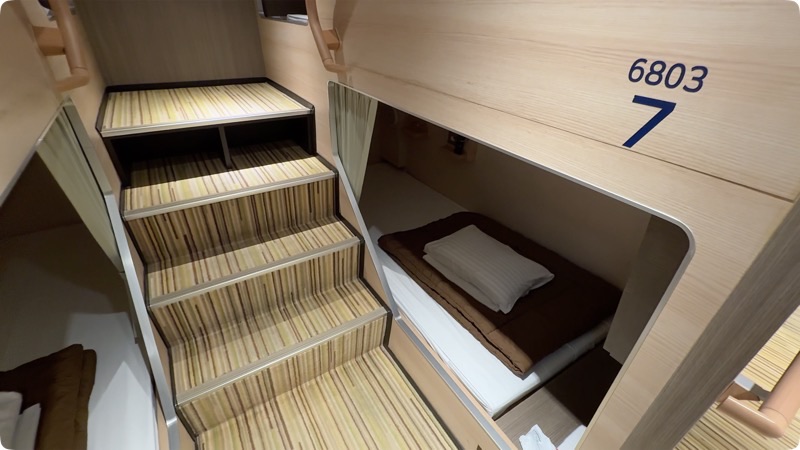 そしていよいよ乗船開始。今回の客室はカプセルタイプの部屋です。