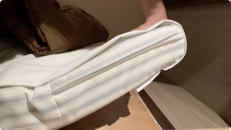 マットレスはやや薄めですが、価格を考えれば十分なレベル。実際に寝てみても問題なく、しっかり休むことができました。