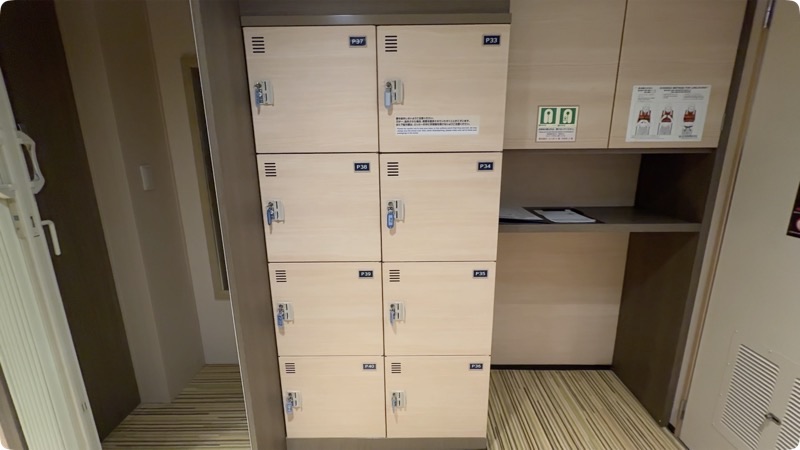 部屋と同じエリアにロッカーがあるのは嬉しいです。普通は一回外に出てロッカーの場所を探さないといけませんからね。