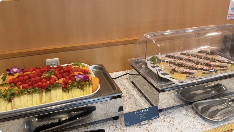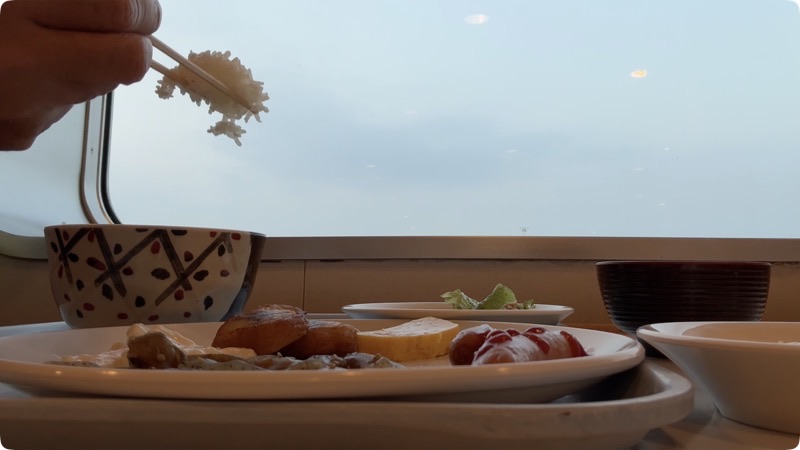 味噌汁も具沢山で、全体的に「しっかり美味しい」内容。デザートまで楽しめて、海の上での食事としてはかなり満足度が高いです。