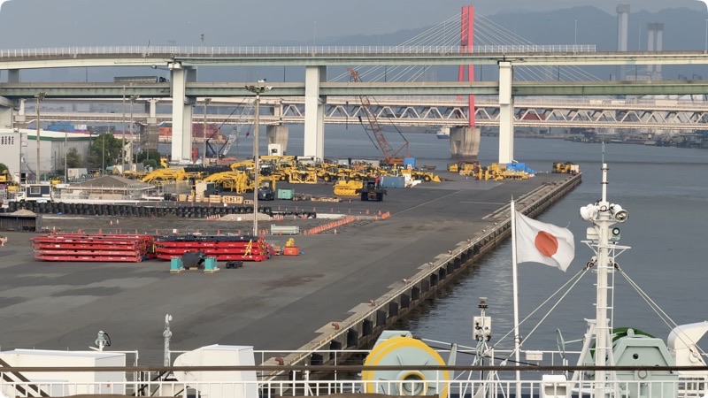 大分港を出港し、神戸までは約10時間の航海後、翌朝には神戸の街並みが見えてきて、いよいよ到着。
